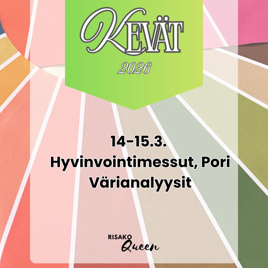 Olen mukana Hyvinvointimessuilla Matinestoren osastolla tekemässä värianalyysejä. Varaa oma paikkasi värianalyysiin ennakkoon Matinestoren verkkokaupasta. Earlybird hinta on voimassa viikon 14 loppuun asti, jonka jälkeen hinta nousee.